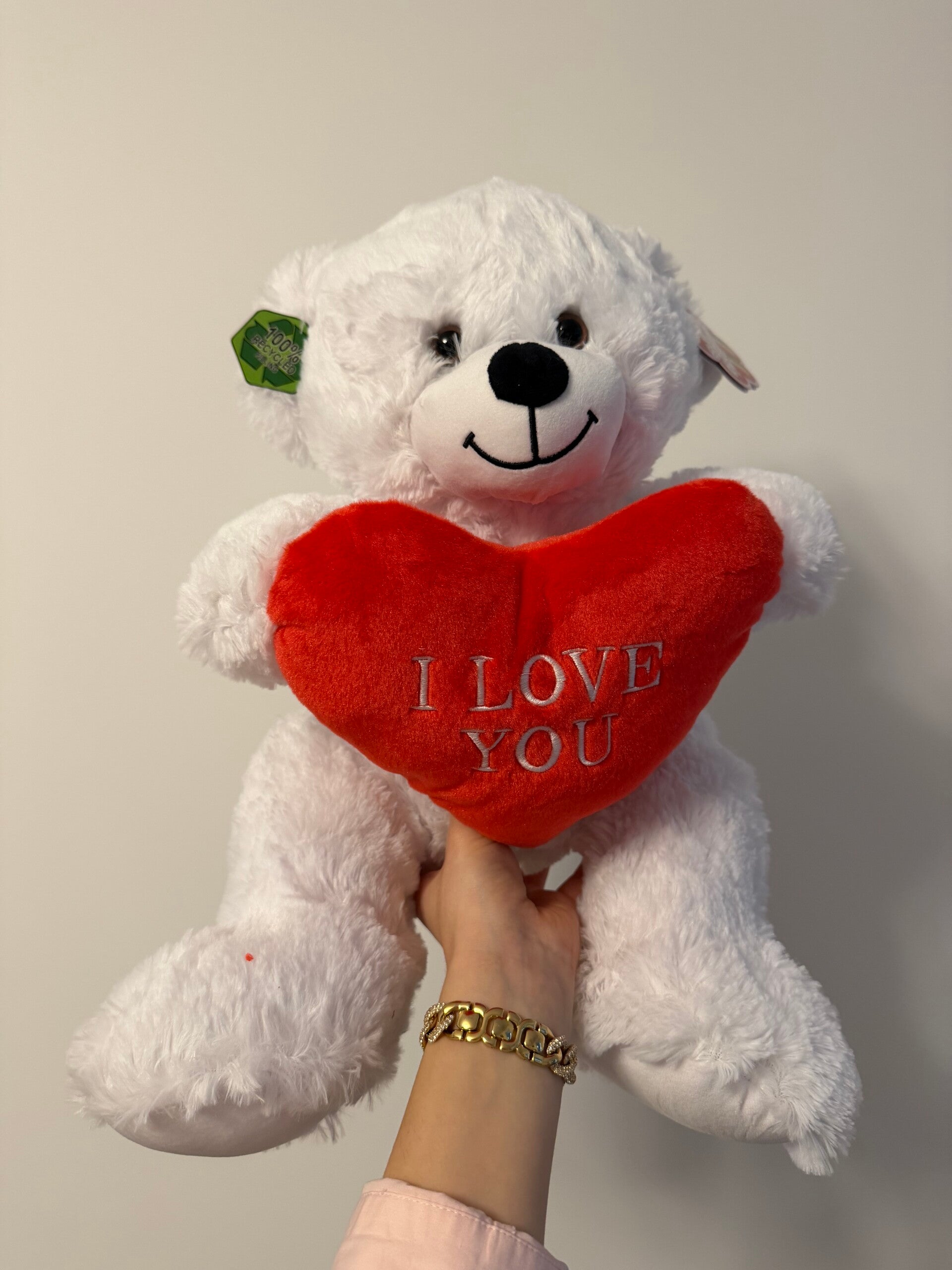 40 cm White teddy with red I love you heart.