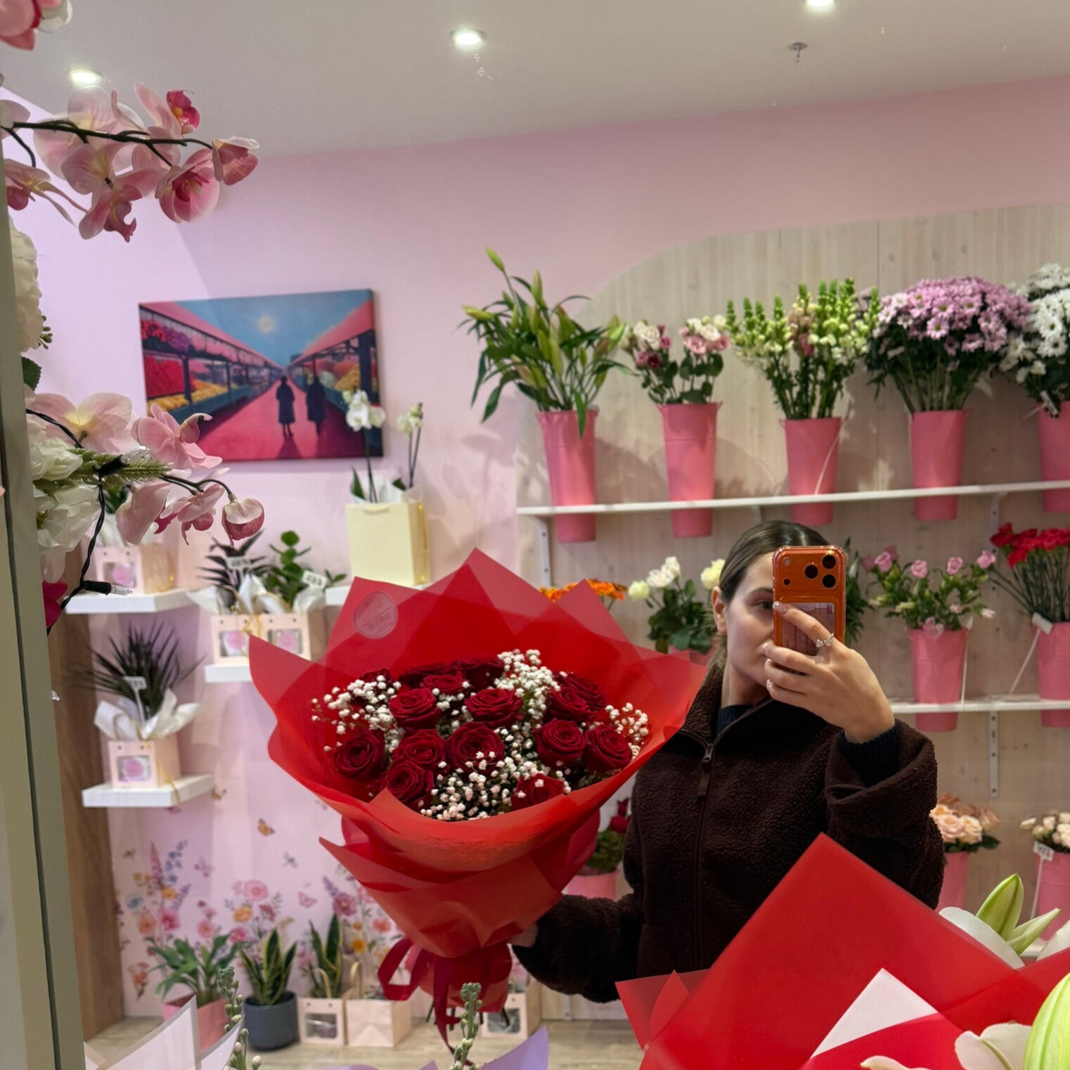 15 red roses with gypsophilia. Wrapped up perfectly and by your choice. Perfect for any special event, occasions. Make your loved ones smile with our nicest Naomi red roses.